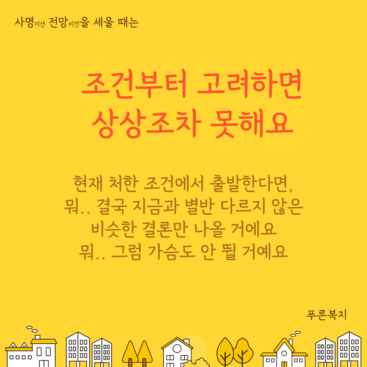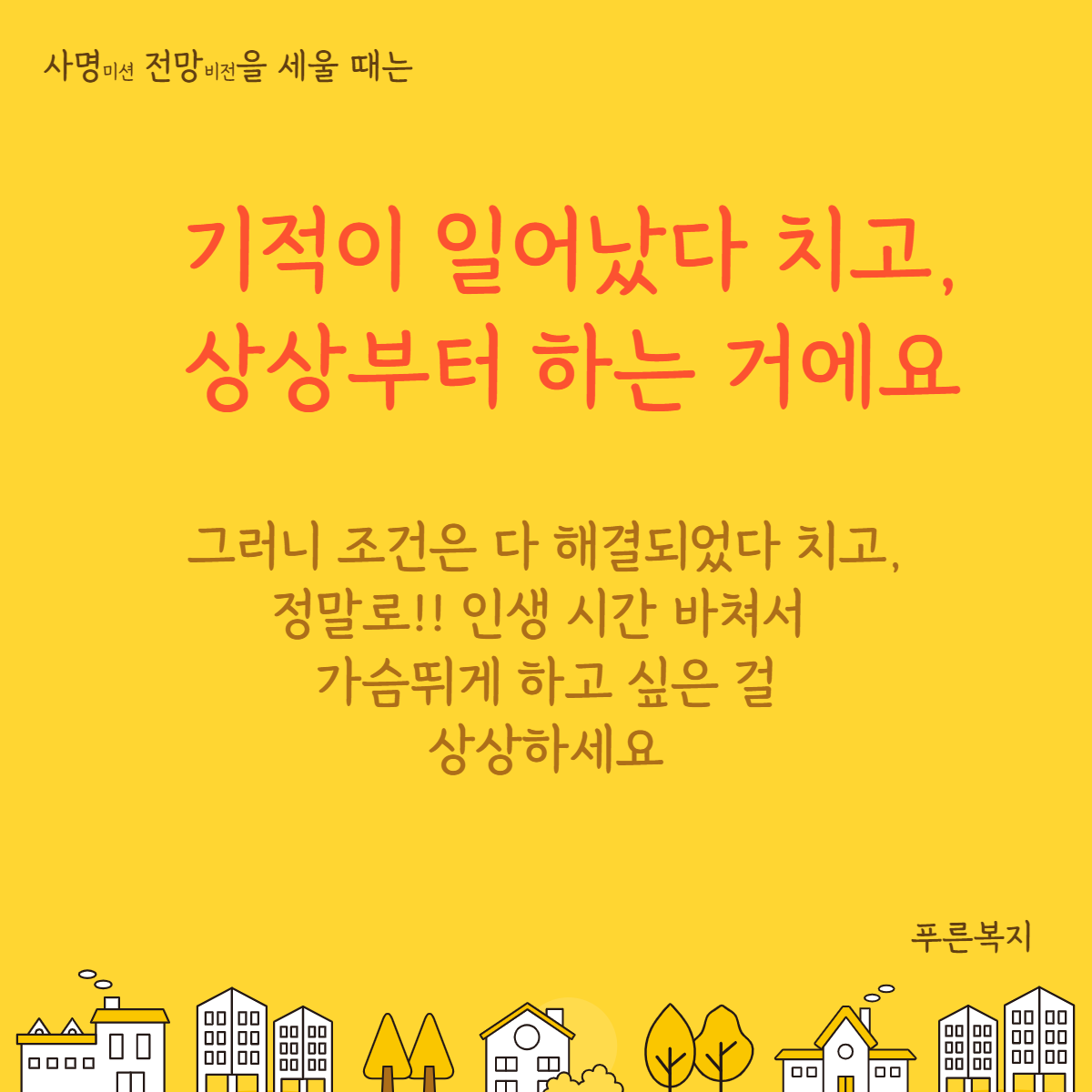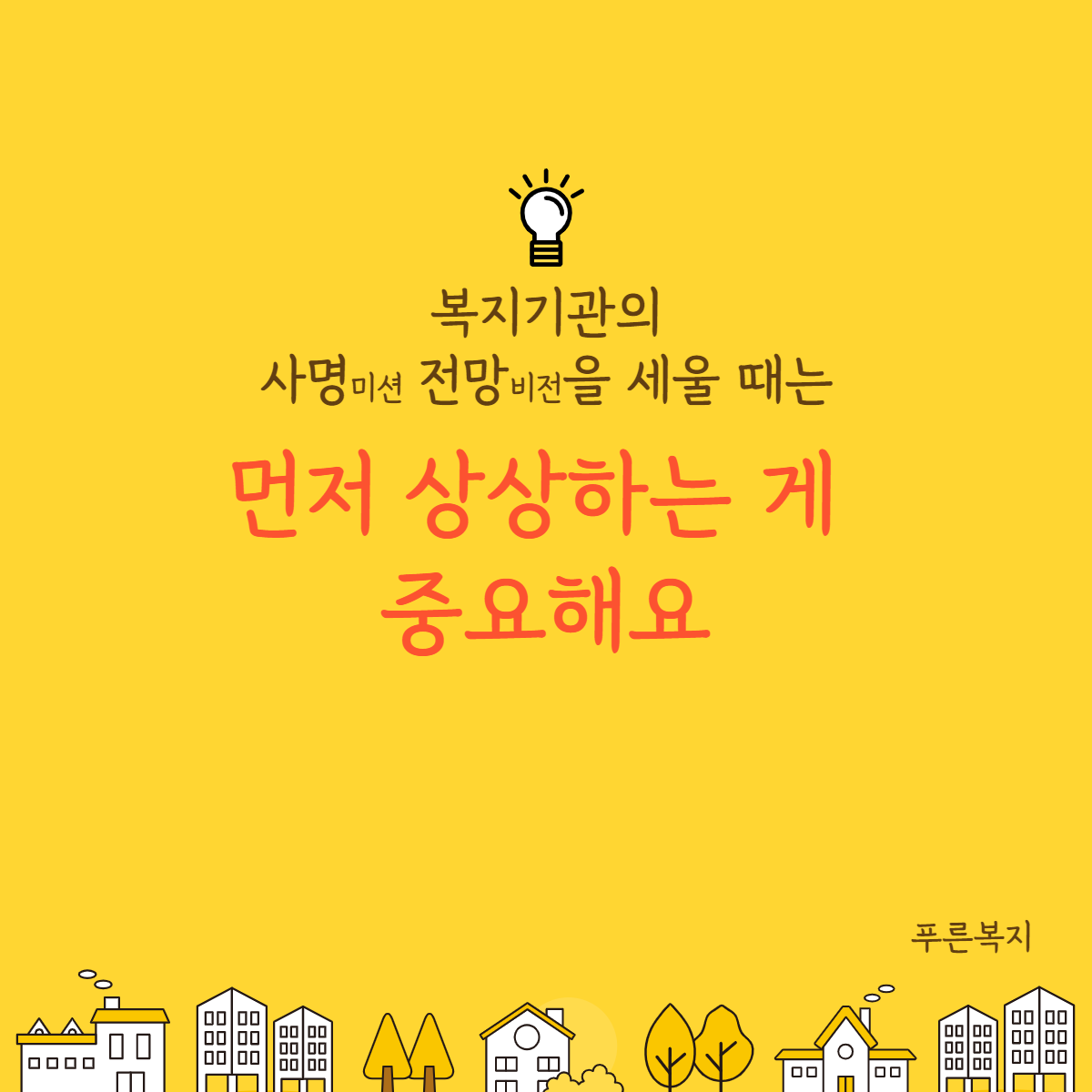 [카드뉴스] 복지기관의 미션 비전을 세울 때는 먼저 상상하는 게 중요해요.
