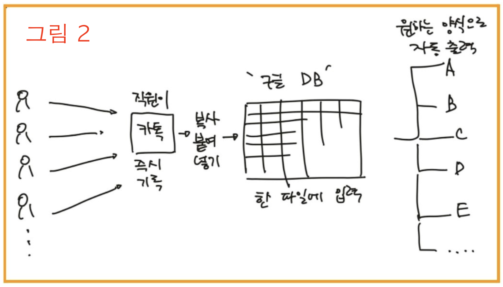 변경한 방식 : 데이터베이스 한 곳에 취합한 후 원하는 양식으로 자동 출력하는 방식으로 변경