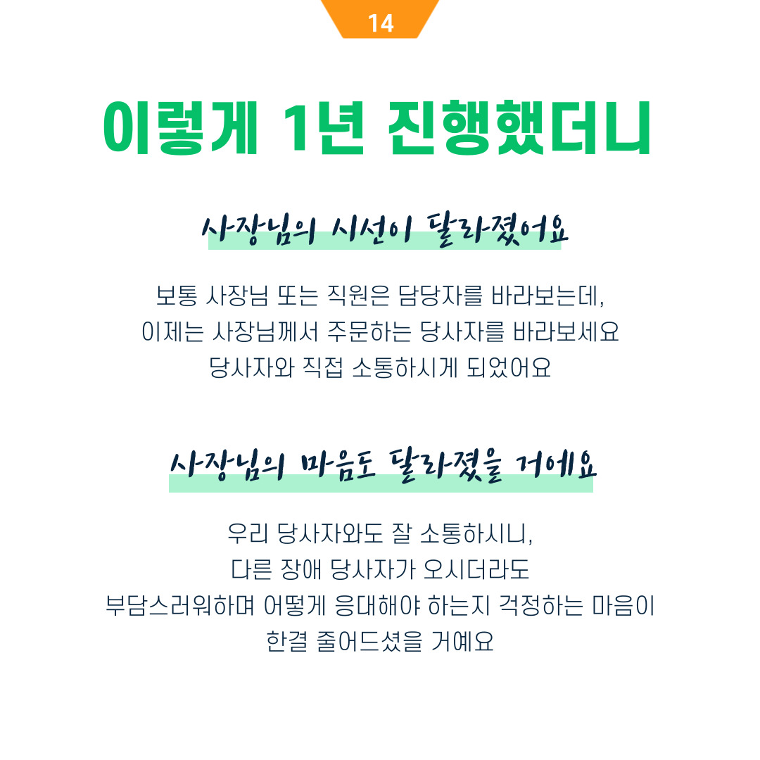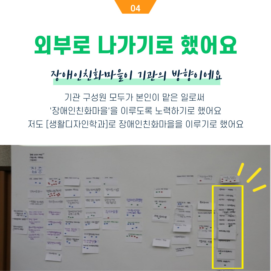 그렇게 본인들이 세우고 동의한 장애인친화마을이라는 미션 비전을 향해 나갔습니다.