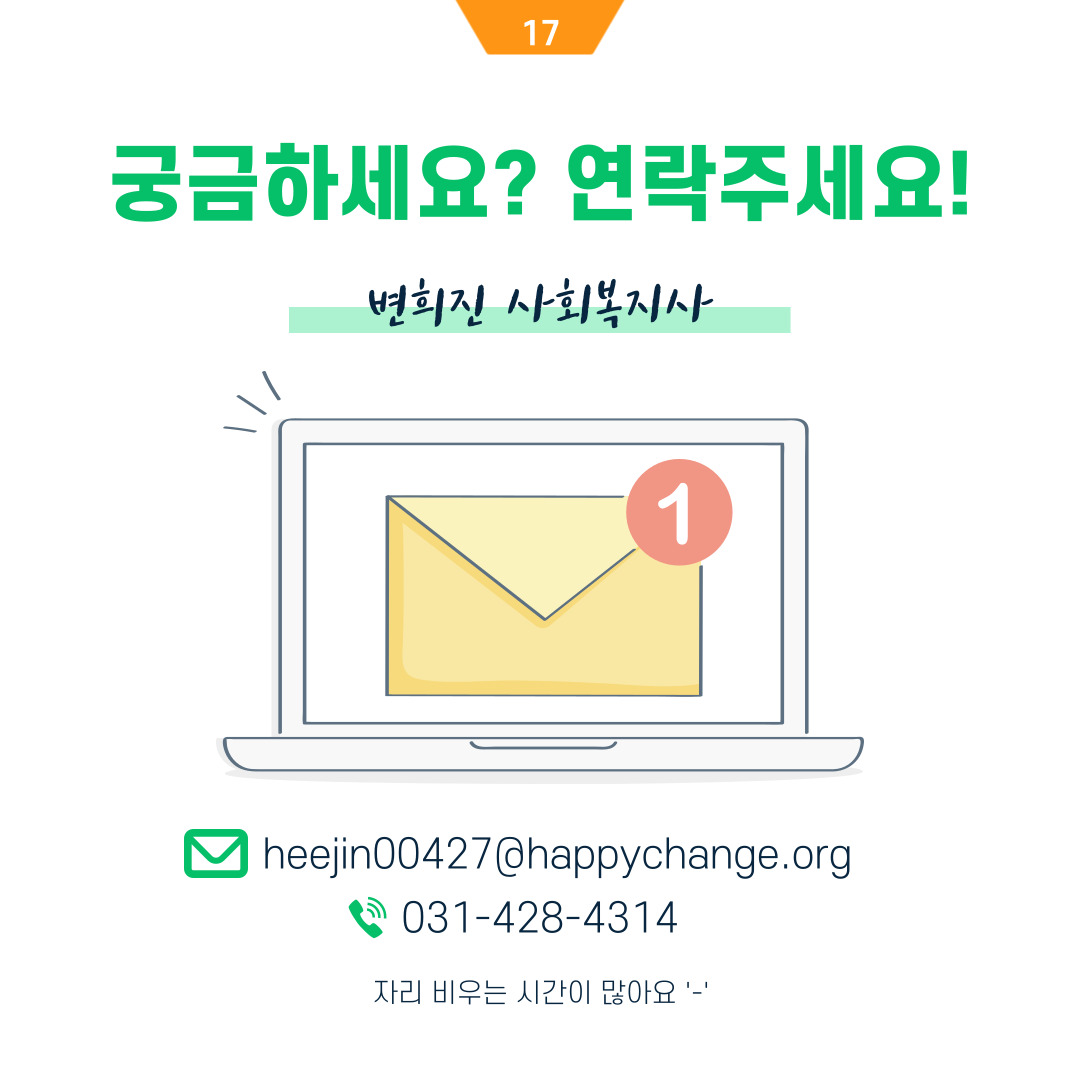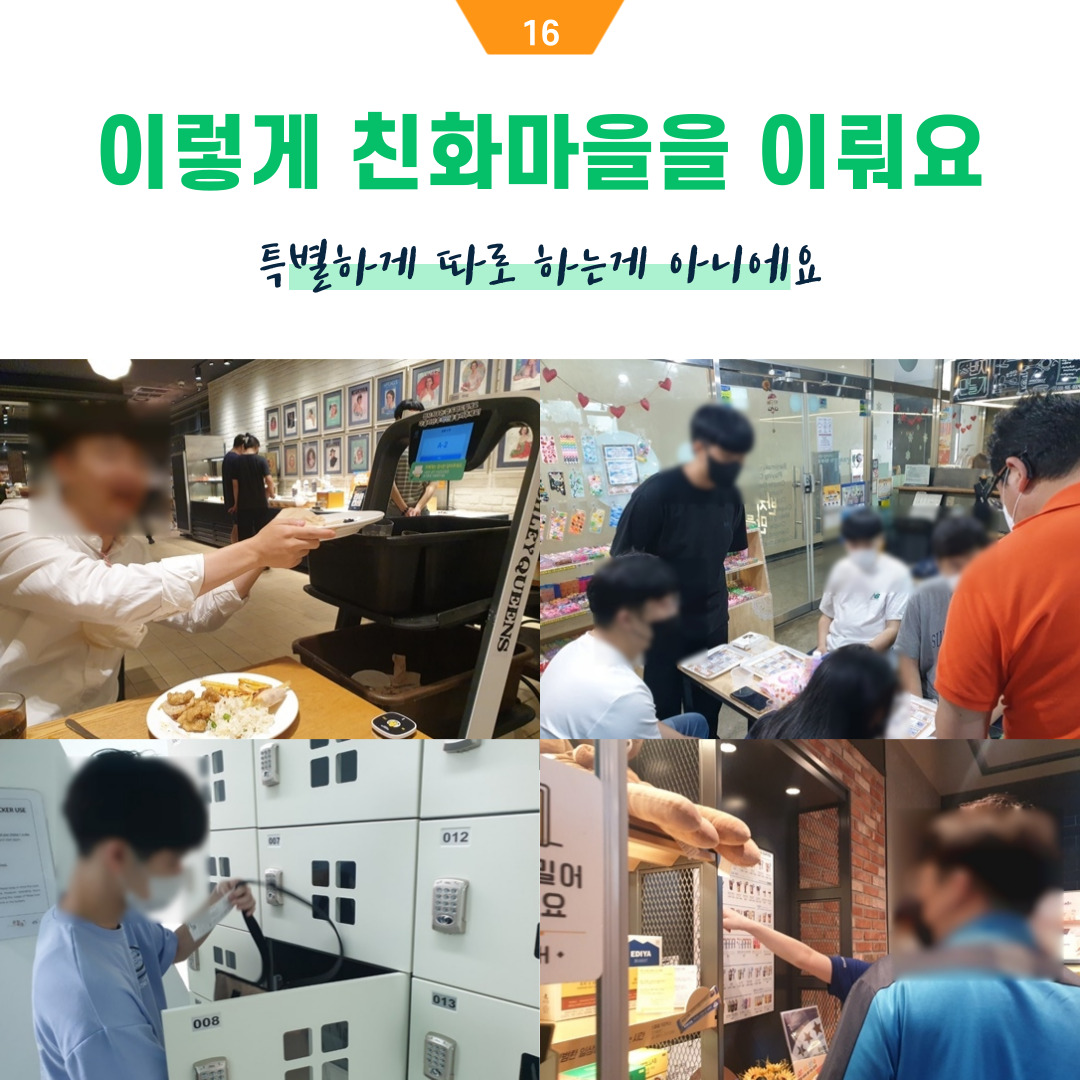 앞으로 한 달에 2번씩 직원분들이 실천한 친화마을 활동을 카드뉴스로 공유합니다.