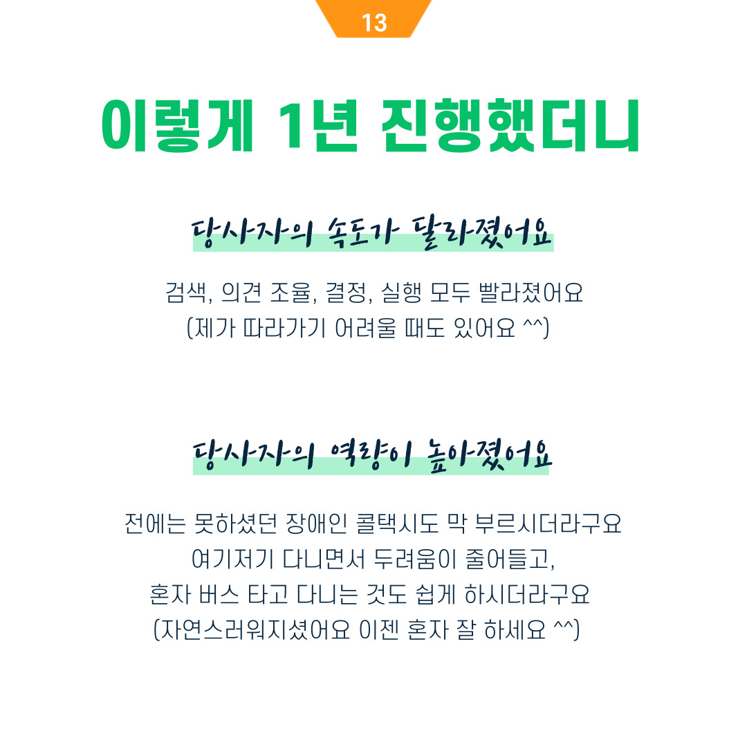 그렇게 본인들이 세우고 동의한 장애인친화마을이라는 미션 비전을 향해 나갔습니다.
