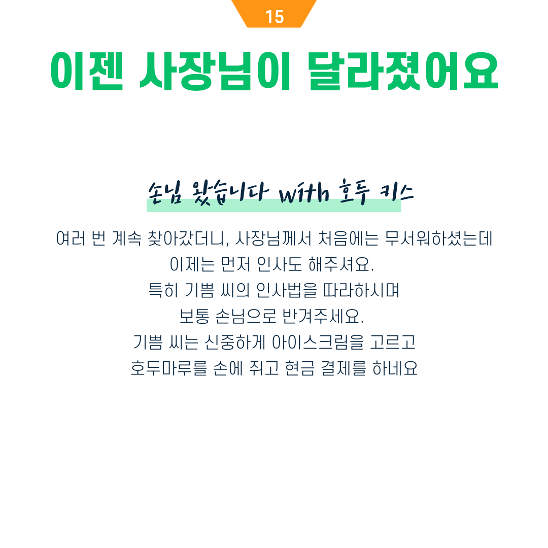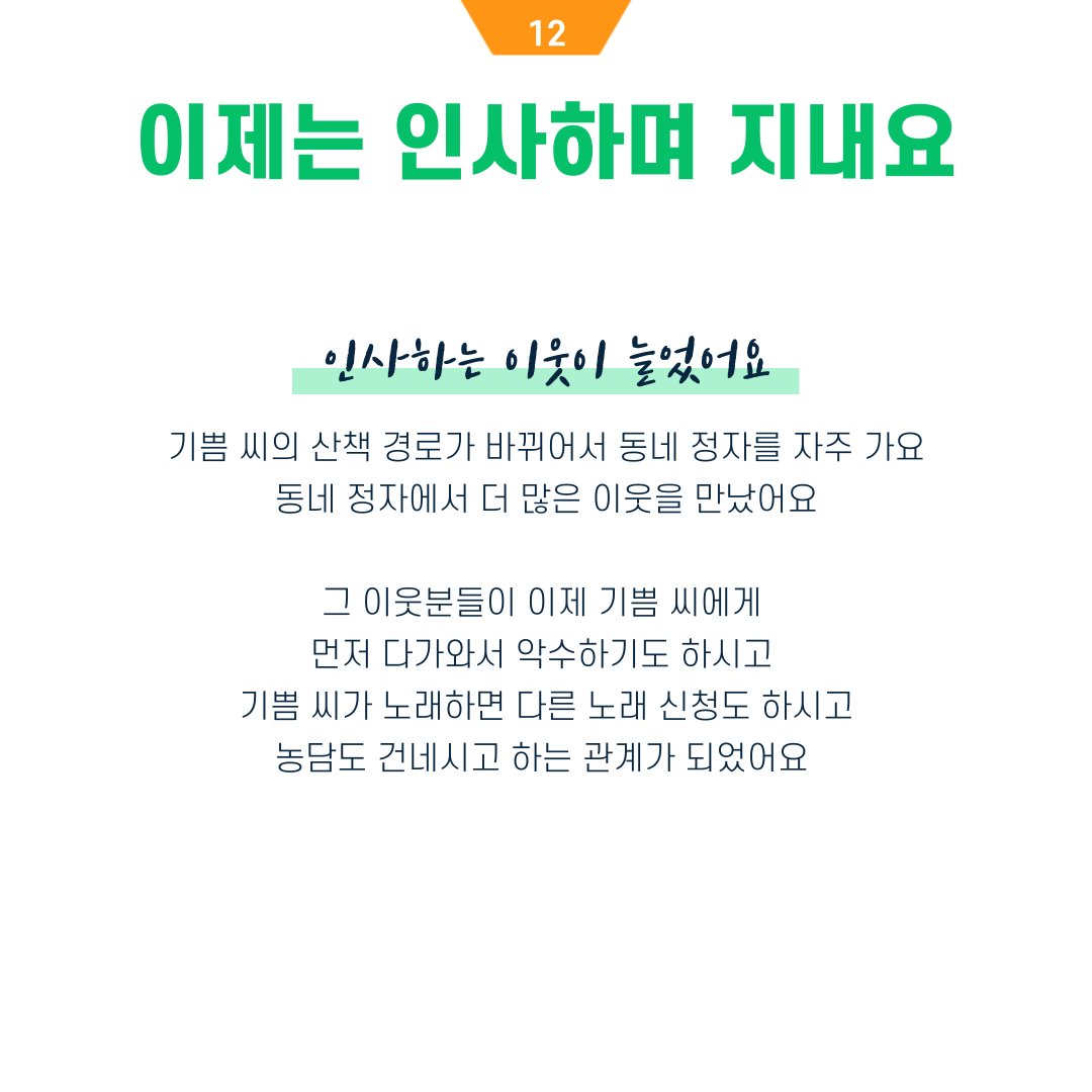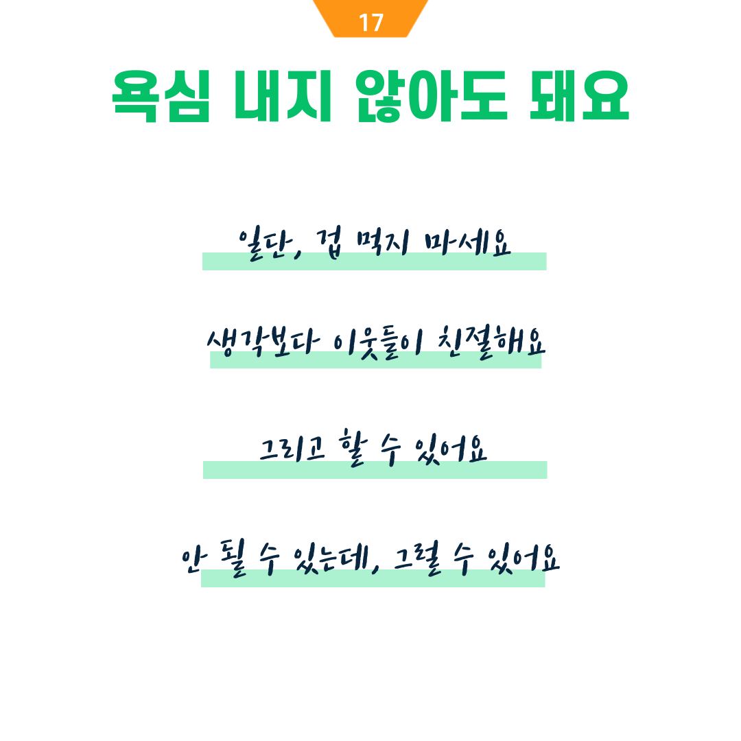 주변 사람이, 동네가 조금씩 친화적으로 바뀌는 거라 믿어요.