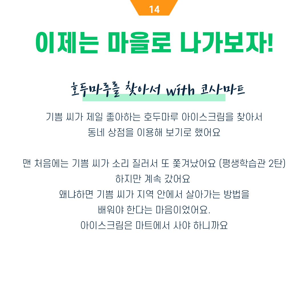 저는 장애인복지관의 친화마을 실천이 거대한 것이라 생각하지 않아요.