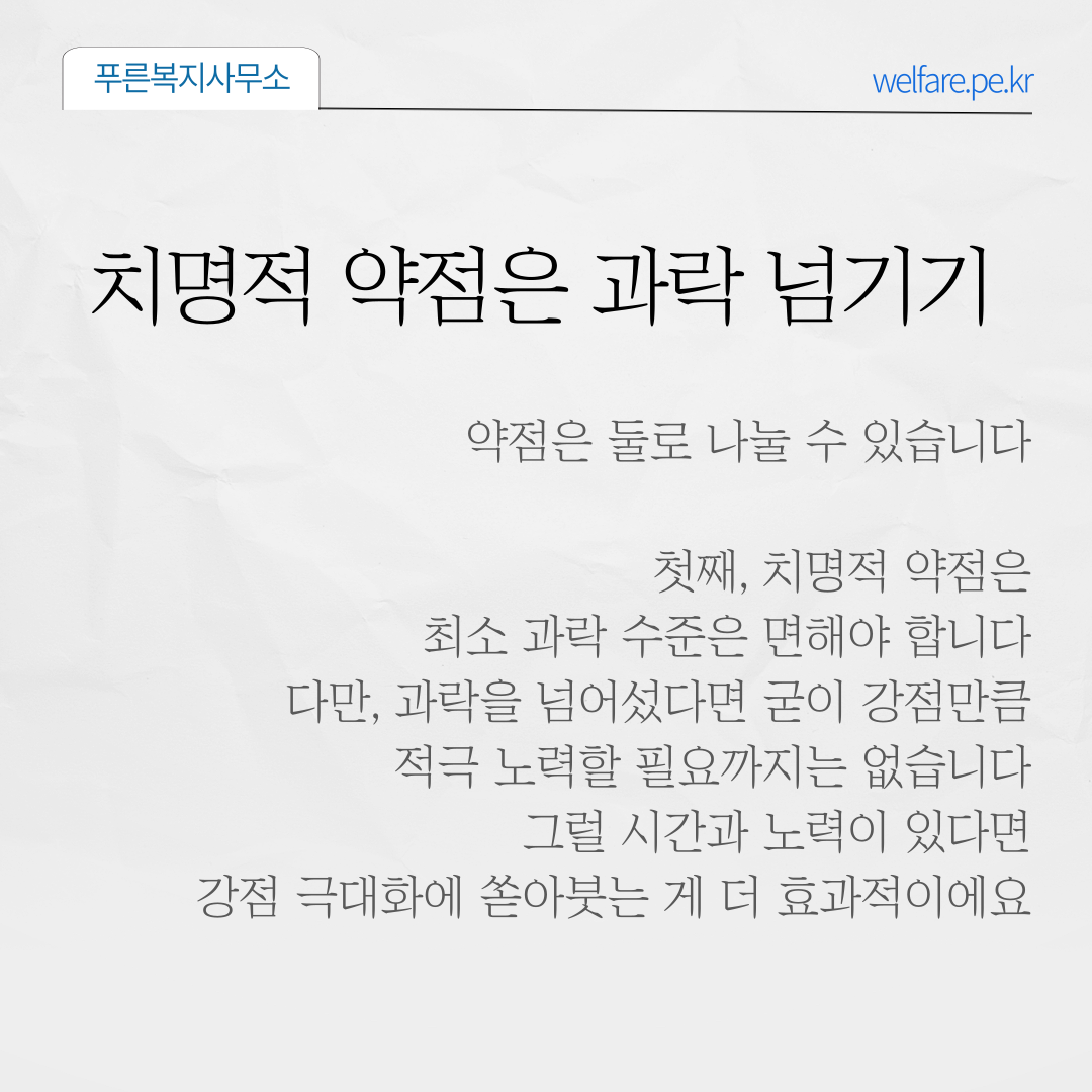 약점 중 치명적이지 않은 건 감내하고, 반면 치명적인 건 최소 과락 수준은 면하는 게 좋습니다.
