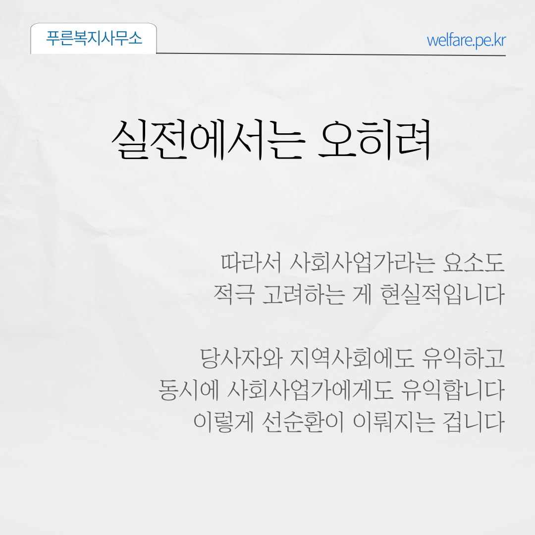 그래야 당사자와 지역사회에도 유익하고, 사회사업가에게도 유익합니다.