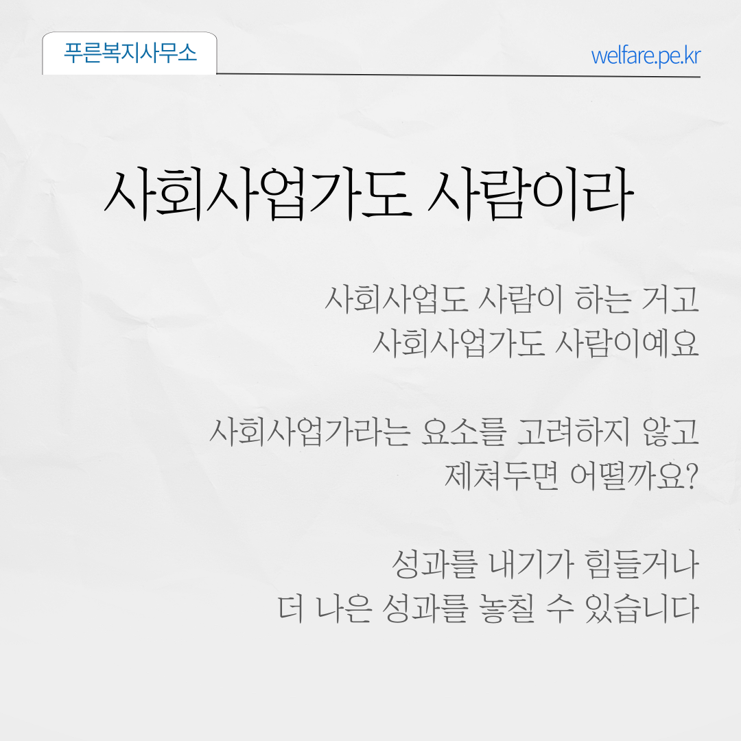 사회사업도 사람이 하는 거고, 사회사업가도 사람입니다.