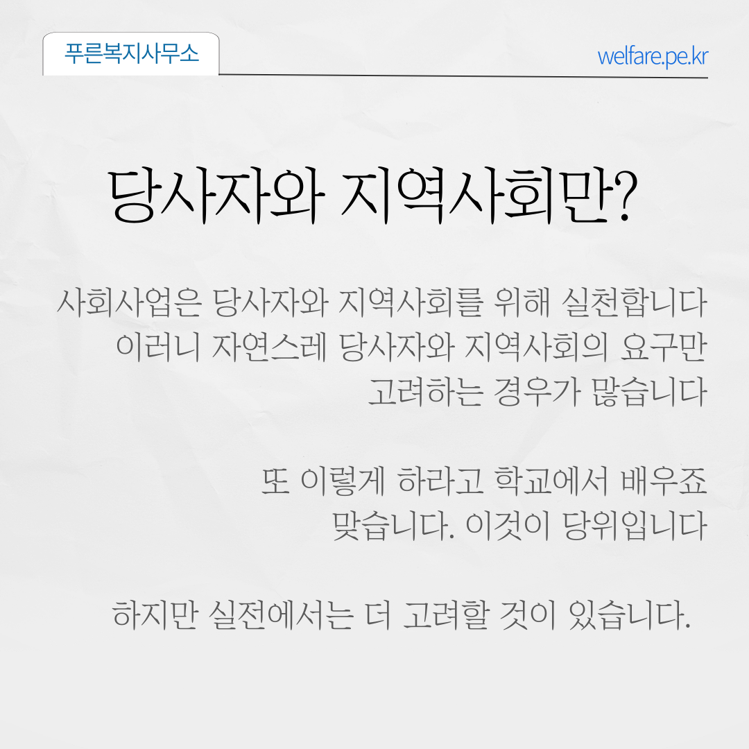 사회사업은 당사자와 지역사회를 위해 실천합니다.