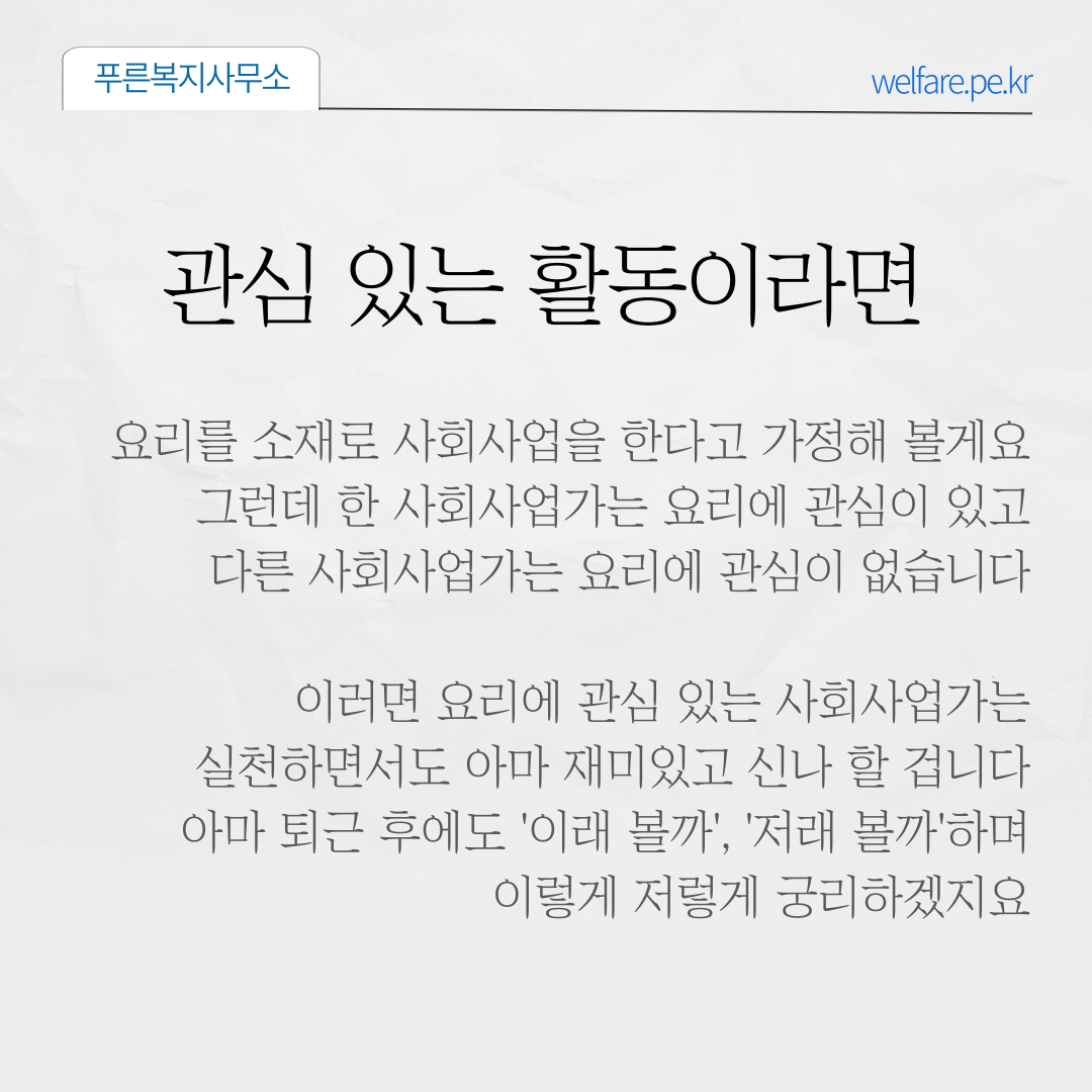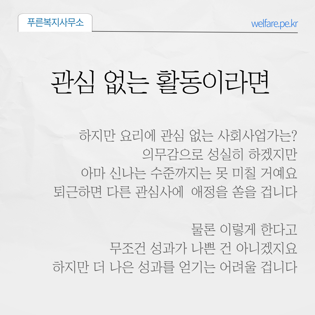 이러면 요리에 관심 있는 사회사업가는 실천하면서도 아마 재미있고 신나 할 겁니다.