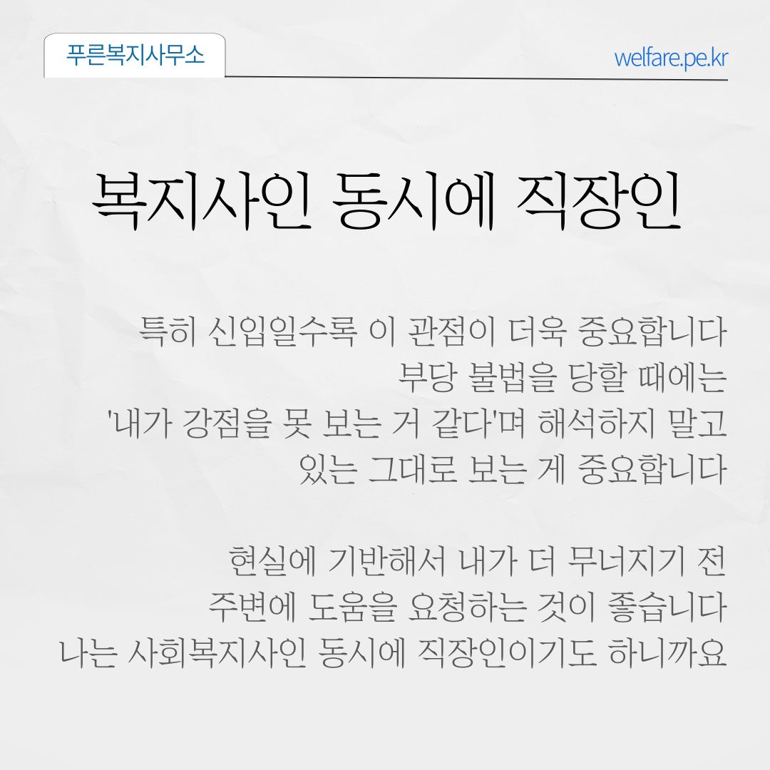 사회복지기관의 사회복지사도 직장인입니다.