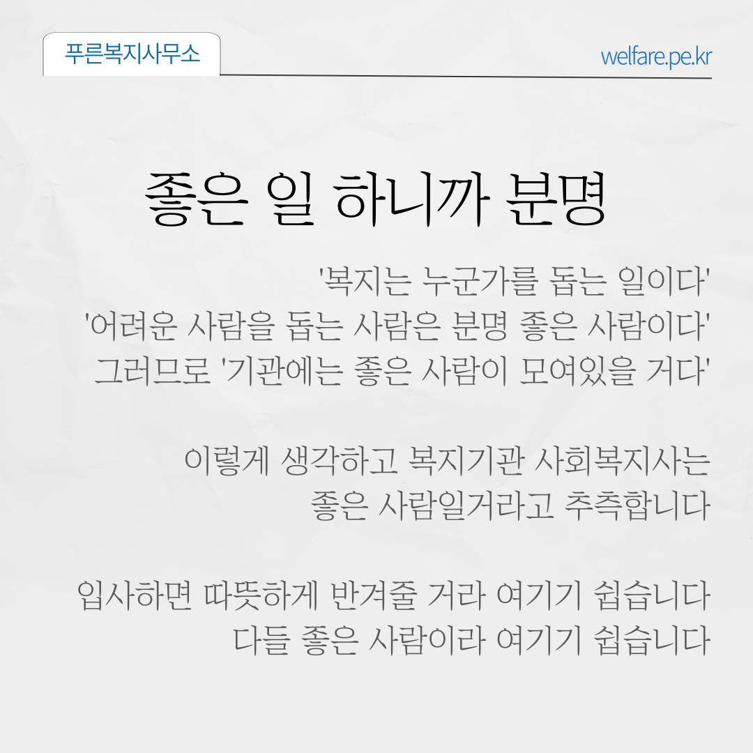 하지만 모든 직장인이 그렇듯 사회복지사라고 해서 모두 좋은 사람일 수는 없습니다.