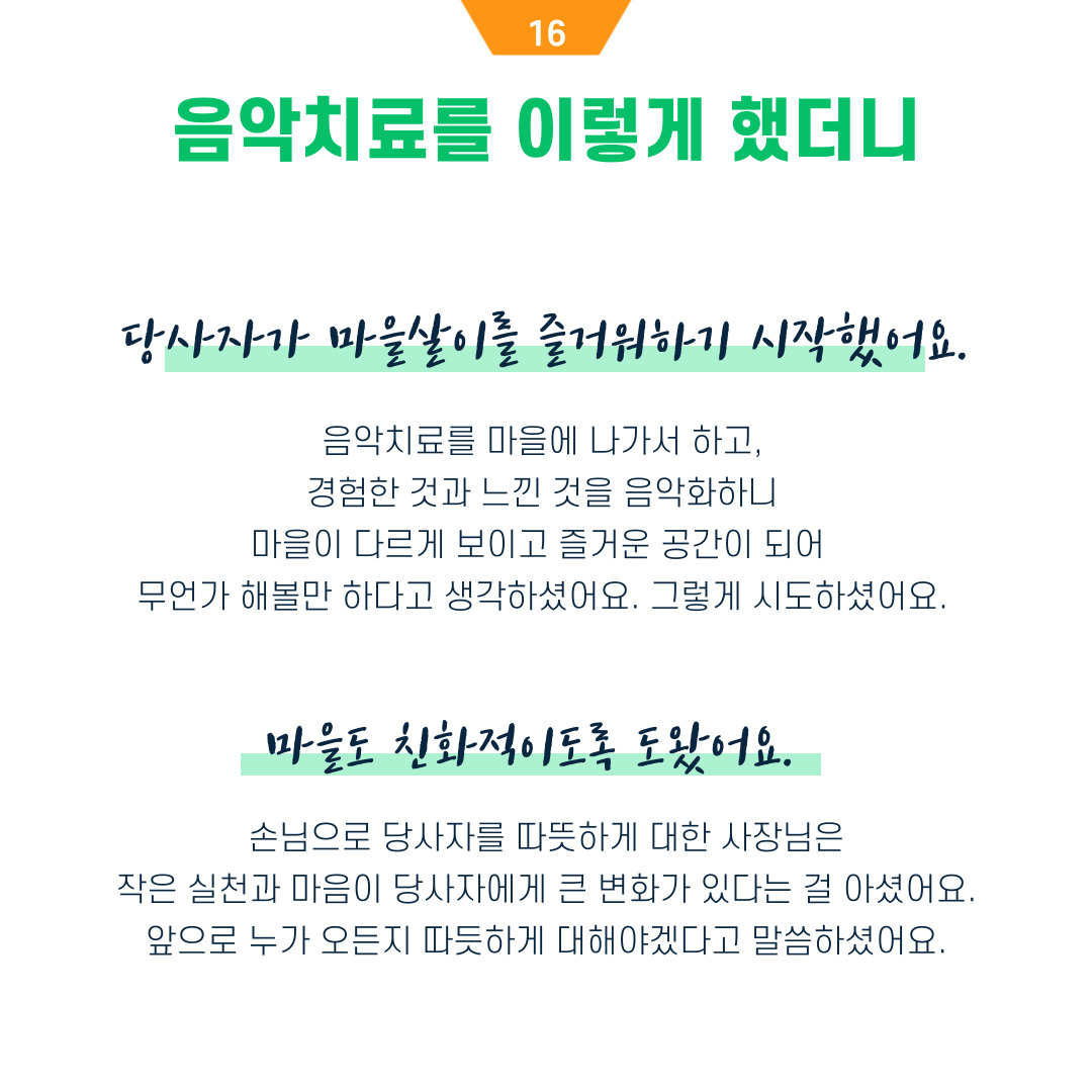 여기 치료팀이 친화마을을 실천한 사례가 있습니다.